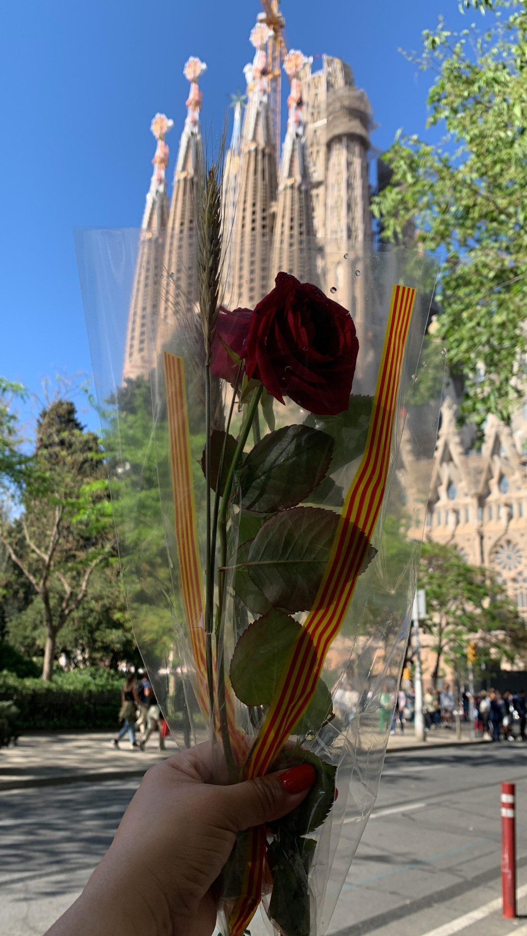 La festividad tiene sus raíces en la antigua leyenda de San Jorge, el patrón de Cataluña. Según el relato, un dragón aterrorizaba a un pequeño pueblo y, para apaciguarlo, se sacrificaba a una persona al azar. Un día, la princesa fue seleccionada para ser el próximo sacrificio, pero justo cuando el dragón estaba a punto de devorarla, apareció Sant Jordi. Con valentía, el caballero mató al dragón y, de la sangre que se derramó, brotó una rosa roja que Sant Jordi regaló a la princesa.